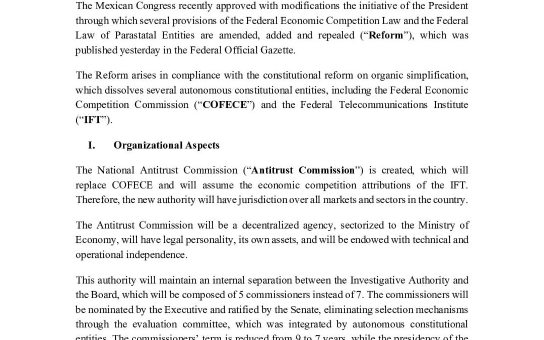 VAA 20250717 Reforma Ley Federal de Competencia Economica (EN) 00 Jul 17, 2025 Submit a Comment Cancelar respuestaTu dirección de correo electrónico no será publicada. Los campos obligatorios están marcados con *Comentario * Nombre * Correo electrónico * Web Δ